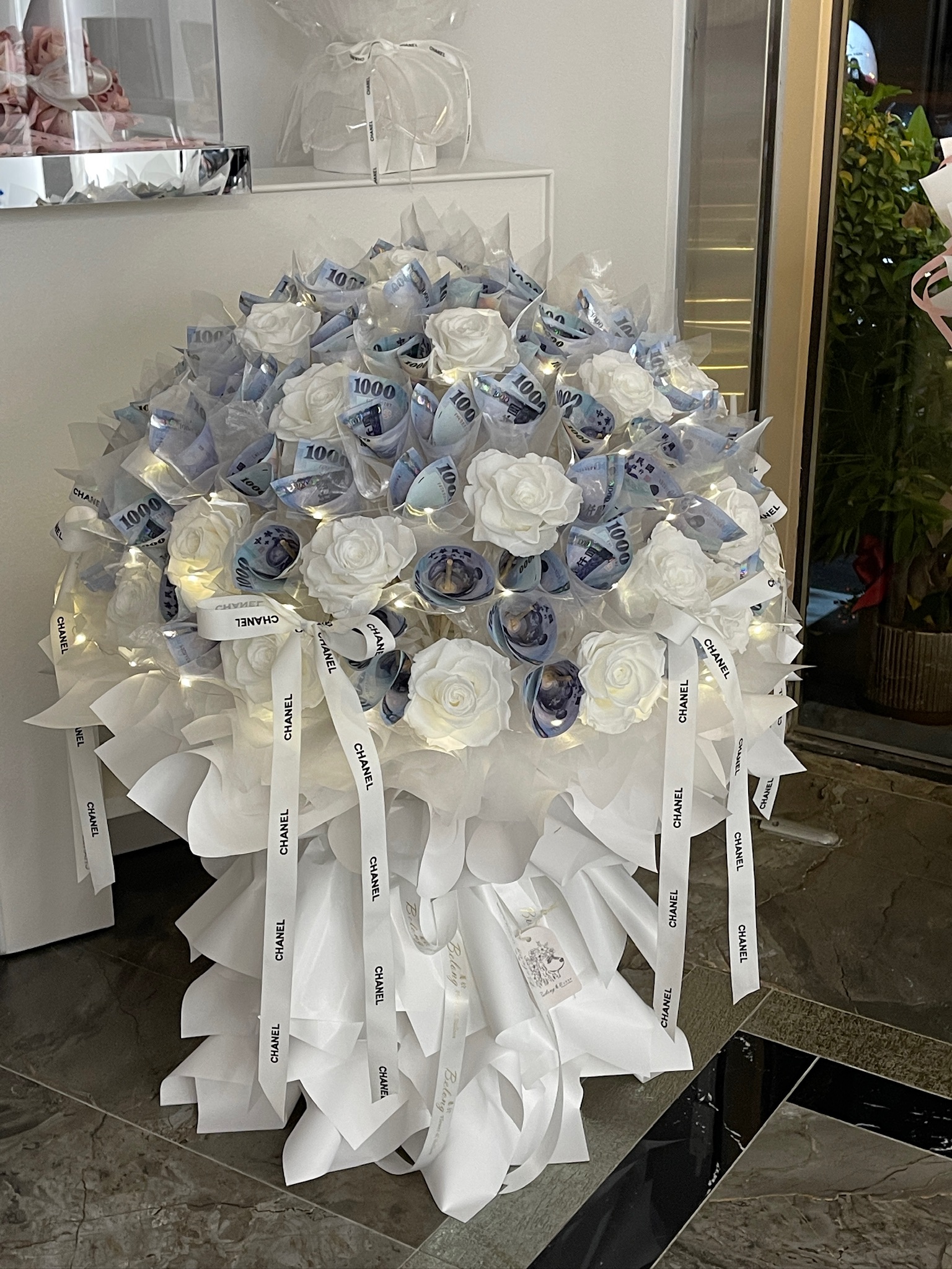使用99張鈔票+20朵永生玫瑰