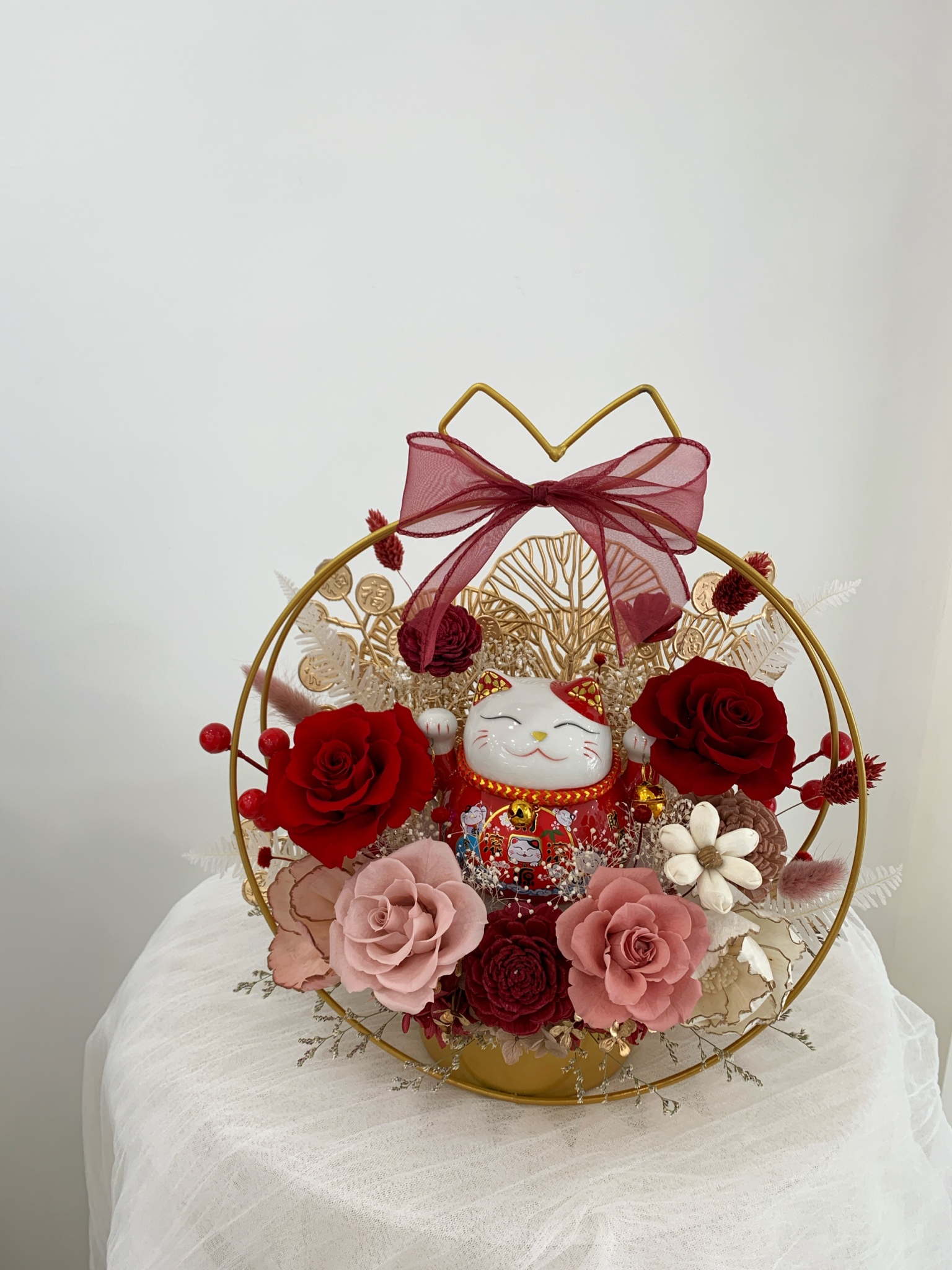 【潭子現貨】招財貓金屬圓形花禮